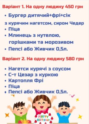 Сет-меню на дитяче свято . Інфо за т. 099-48-47-607